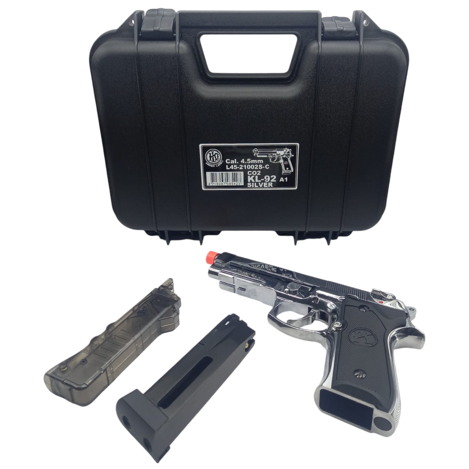 - Calibre: 4,5 mm • Munição: esferas de aço